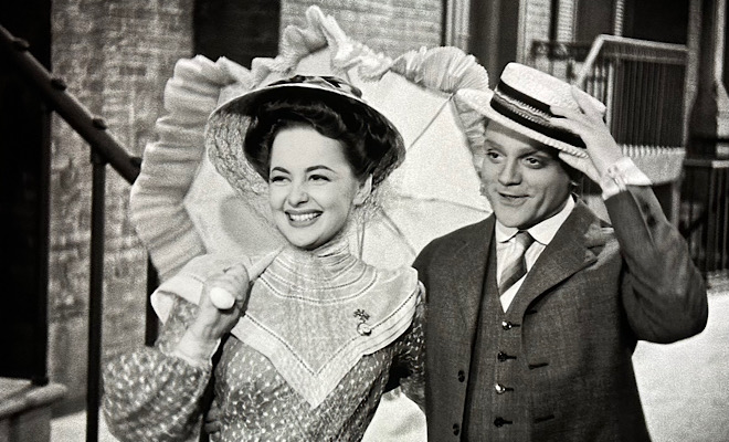 In his autobiography Cagney by Cagney, the actor writes that the film's title was changed to The Strawberry Blonde during production in honor of his mother, who herself was a strawberry blonde and who danced with a beau named Casey when she was 16 years old on the very night the song "Casey Would Waltz with the Strawberry Blonde" debuted. It's a lovely story, but I've never read it anywhere else, so its veracity may be suspect. The song, however, is infectious and this print reinserts a two-minute, bouncing-ball, sing-a-long coda that follows The End credit. Corny? Yes, but The Strawberry Blonde is so buoyant and brims with so much joyful nostalgia, only certified curmudgeons will be able to resist raising their voices and chiming in.