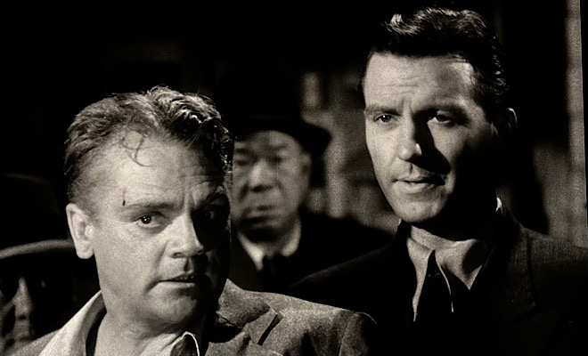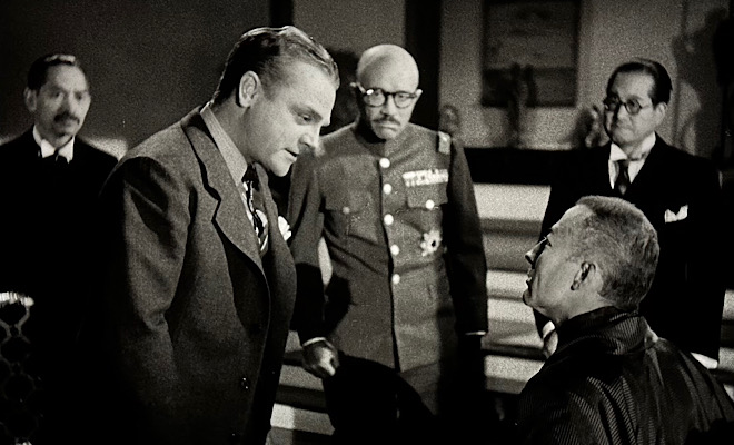 That's the terrific last line of Blood on the Sun, which takes place a dozen years before the Japanese attacked Pearl Harbor and dragged America into World War II. Produced just before the war ended in 1945, director Frank Lloyd's high-octane film noir focuses on a key warning sign that might have tipped off the U.S. to Japan's nefarious intentions. The final kiss-off, delivered with defiance by the movie's star, James Cagney, signals America's willingness to make peace with its enemy but emphasizes its resolve to finish the job at hand.