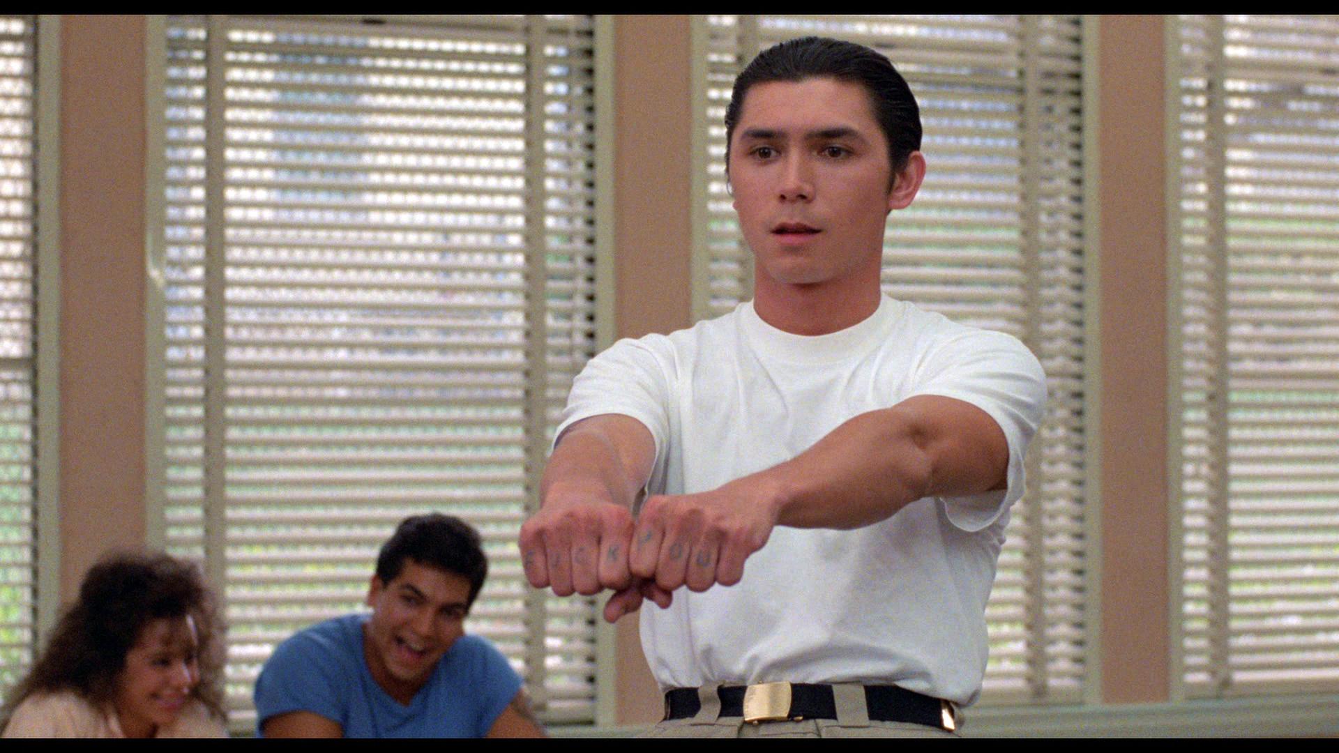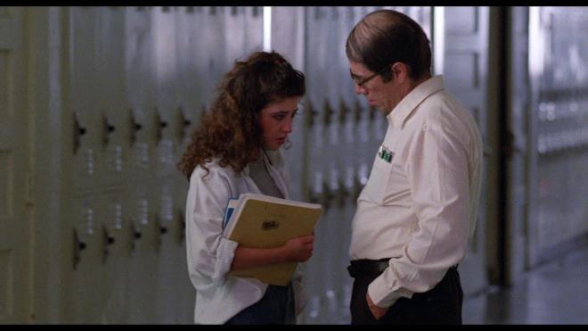 Shot by Tim Richmond (who also shot Repo Man!), Stand and Deliver is a no-nonsense sort of production that isn’t flashy, elaborate, or overly showy with its visuals, but still looks damn good on Blu-ray. Again, I don’t believe I’ve seen this film since it was on cable decades ago, so this was a fresh viewing experience, and I was impressed with the results. WAC continues their tradition of performing excellent 4K restorations for lovely 1080p Blu-ray results. Details are sharp and clear without making the image look too polished or inorganic to the original appearance. This film was shot in 1987, and it looks like a film from the late ‘80s. The facial features, clothing, set design, and a notable combover all look fantastic. I did notice a small bit of black crush here and there, usually around optical transitions and at night, but nothing serious or distracting. Generally, the image holds tight with nice colors, stable contrast, a cinematic grain structure, and healthy skin tones bolstered by a strong encode.