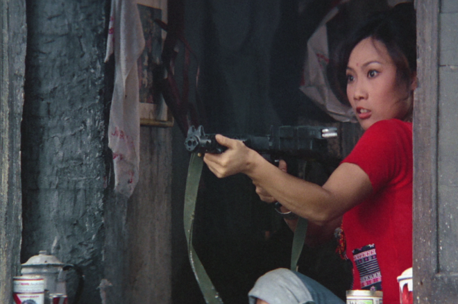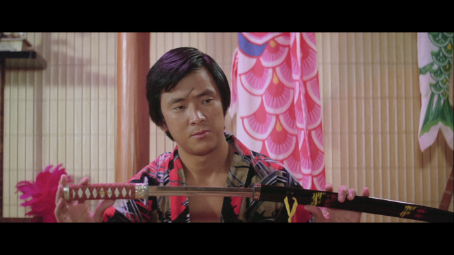 This AVC-encoded 1080p 2.39:1 presentation is sourced from a new 2K restoration. In general, the image quality is solid in bright and daytime settings. Good detail and realistic color reproduction, although certain shots look a bit soft due to lens choice or intentional diffusion. Grain is usually not too noticeable, although in many nighttime and darker scenes, it gets a bit clumpy. Not jaw-dropping, but pretty strong for a Hong Kong production of this era.