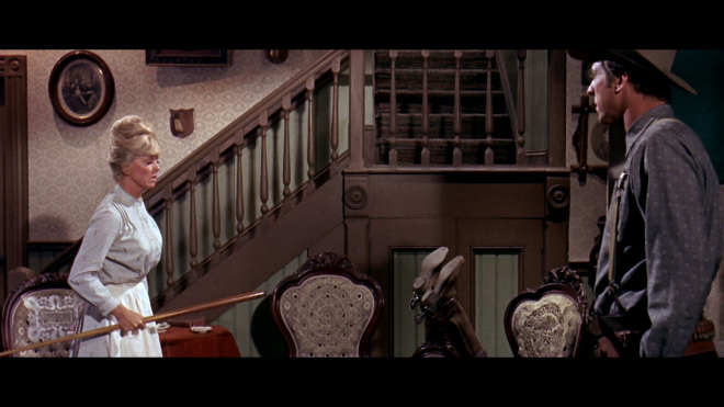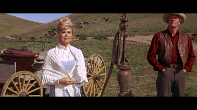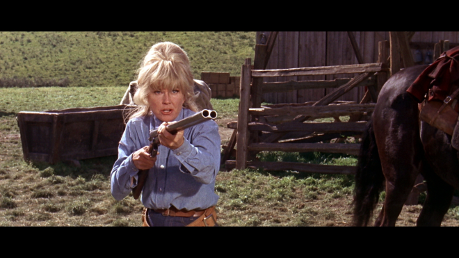 The Ballad of Josie is presented in its proper 2.35 aspect ratio, looking about as good as intended but not spectacular. Elements are reasonably clean, free of dirt or scratches. A few shots appear a bit shaky, which seems to be baked in to the original elements. Colors are natural without being overly bright, likewise the picture details aren't particularly sharp but clear enough to point out fake backgrounds and the like. (Unsurprisingly, this Wyoming story was actually shot in good old California.)