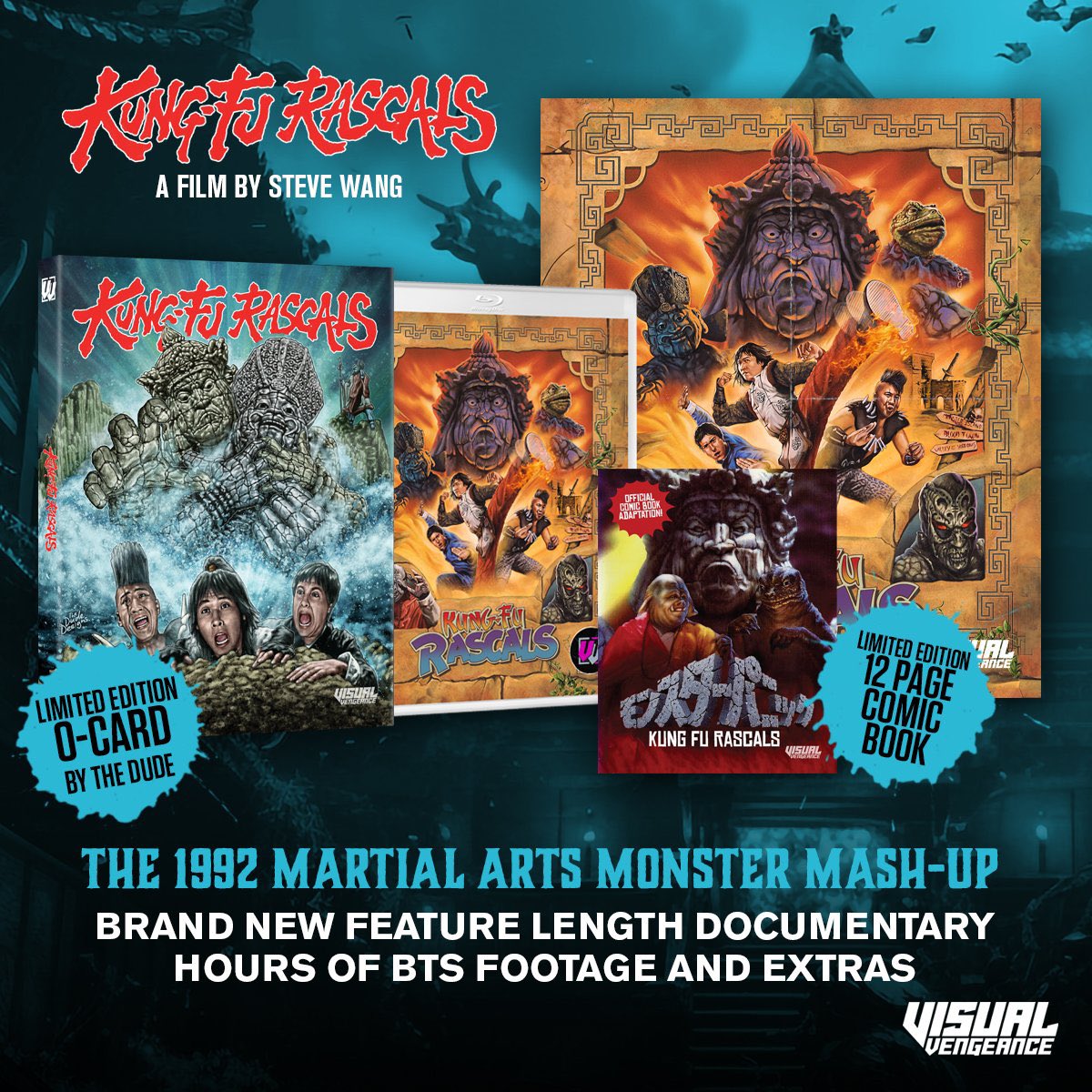 A frantic, eccentric and loving homage to Asian cinema in all its forms, Kung Fu Rascals is part old school chop socky movie, Kaiju flick and Power Rangers episode rolled into one. The directorial debut from legendary Hollywood special effects artist Steve Wang (The Monster Squad, Predator,The Guyver, Drive), this Super 8 epic showcases both his monster make-up mastery and sharp action movie sensibilities.