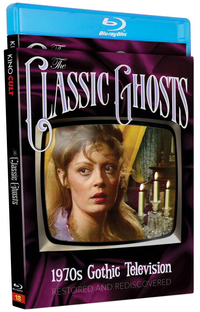 The Classic Ghosts: 1970s Gothic Television arrives on Blu-ray for the first time complements of Kino Cult. Their 18th release in the line, the five feature-length episode series is spread across two Region A BD50 discs. The discs are housed in a standard sturdy case with identical slipcover artwork. The discs load to standard static-image main menus.
