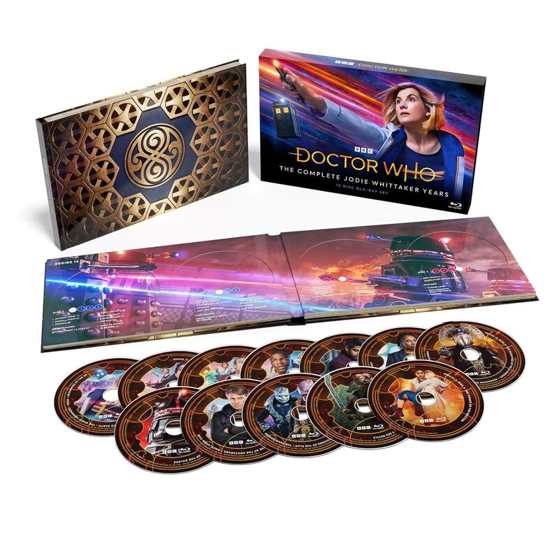 Travel through time and space in this 12-disc set that collects every episode featuring the Thirteenth Doctor! Jump on the TARDIS for an adventure through time and space with the Thirteenth Doctor's Jodie Whittaker as she travels to the far future to the planet Kandoka, or visits Nikola Tesla in the past. With the Thirteenth Doctor sorting out fair play across the universe, she is never too far away from her trusted friends Yaz (Mandip Gill), Ryan (Tosin Cole), Graham (Bradley Walsh), and Dan (John Bishop) as they battle against the Doctor's deadliest foes including the Daleks, Cybermen, and a mysterious man who calls himself O (Sacha Dawan). This is a Doctor Who collection you do not want to miss out on!
