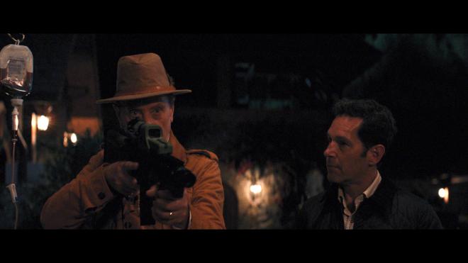 On the audio front, we have an effective but restrained Dolby Atmos mix. I say restrained only because, as far as Atmos tracks go, it’s not going out of its way to blast every channel at you. It’s very purposeful and deliberate, and in that way it works nicely. Dialog is clean without issue throughout. Most stretches feel like the mix is mostly front/center focused, but there’s always a little something spread through the soundscape to make those side, rear, or height channels fire. Take the opening scene on the airplane as an example, not a “blast your ears off” scene of activity, but the ding of the captain’s announcement or the whispery “rabble rabble” of the other passengers and the whine of the engines fill the scene nicely. The rest of the film plays out in a similar way. Once we move to the Leopolds' compound or when they go out hunting for the unicorns, the channel spread finds fun, purposeful ways to fire those channels.