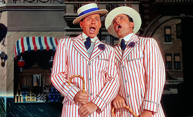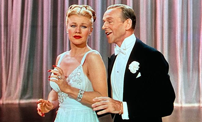 Some of the best are Astaire and Eleanor Powell tapping up a storm to Cole Porter's "Begin the Beguine" in Broadway Melody of 1940 ("You can wait around and hope," Sinatra says, "but you'll never see the likes of this again." And he was right!), Lena Horne performing a scorching rendition of "Honeysuckle Rose" from Thousands Cheer, June Allyson crooning "Thou Swell" with the Blackburn Twins in Words and Music, Kelly and Sinatra hoofing to the title tune in Take Me Out to the Ball Game, Sinatra and Crosby trading melodic witticisms in the clever "Well, Did You Evah?" from High Society, an army of macho dancers led by Tommy Rall and Russ Tamblyn strutting their stuff to "Bless Yore Beautiful Hide" from Seven Brides for Seven Brothers, and the breathtaking climactic ballet from An American in Paris.