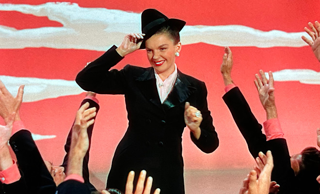 Other highlights include a sequence chronicling the trials various non-singing actors faced when they were cast in musicals, a montage saluting the youthful exuberance of Mickey Rooney and Judy Garland and the similarities of their let's-put-on-a-show musicals, and most thrilling of all, lengthy individual tributes to Astaire, Kelly, and Garland that spotlight such iconic numbers as "Dancing in the Dark" from The Band Wagon, the innovative wall and ceiling dance from Royal Wedding, "Singin' in the Rain," "Over the Rainbow" from The Wizard of Oz, "The Trolley Song" from Meet Me in St. Louis, and "Get Happy" from Summer Stock.
