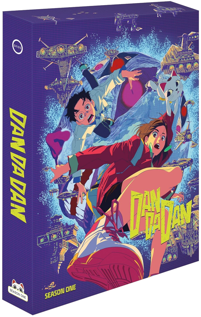 Dan Da Dan, season 1, comes to Blu-ray from GKids. Directed by five-year animation veteran director Fûga Yamashiro and based on the phenomenon manga of the same name, the first season is presented here on two discs, in all its chaotic, colorful, and extremely creative glory. This GKids release features a generous amount of extras offering insight into the making of the series, as well as some physical goodies for fans and collectors. Highly Recommended