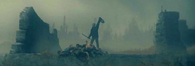 My principal issue with Blood Quantum is its tone; it's all over the map. The first act of the film is somber and meditative with an ominous dread seeping into the story. Then the zombies hit and it's a shocker of a zombie woman holding the corpse of a baby it presumably just moments before gave birth to. Then said zombie is dispatched with some intense bone-crushing gore swiftly followed up by another zombie getting a chainsaw through the back of the head that reminds one of early Peter Jackson material like Dead Alive or Bad Taste - and it's hilarious! I love the zombie kills for how over-the-top and humorous it all is. And the film kinda feels like it's going to be more funny than it started out because the situation is so ridiculous it leans into the humor naturally. Then it gets damn ominous and pretty damn depressing. While not cohesive, scenes and sequences are well put together, it's not like the final outcome is out of expectation, but I can see some folks struggling with it. You're laughing one second and then a zombie woman is devouring an essential piece of someone's anatomy where you then ask "wait, should I be laughing?"