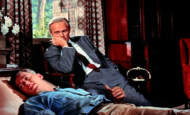 The DTS-HD Master Audio 2.0 stereo track pumps out robust sound with some distinct separation across the front channels. The stereo really amps up the impact of the deliciously eerie score by two-time Oscar-winner Leonard Rosenman, who wrote The Cobweb music in between his two memorable scores for two James Dean pictures, East of Eden and Rebel Without a Cause. A wide dynamic scale gives all of its soaring highs and weighty lows plenty of room to breathe, while wonderful fidelity enhances tonal depth. All the dialogue is well prioritized and easy to comprehend and no age-related hiss, pops, or crackle sully the mix. Not many Warner Archive titles are blessed with stereo soundtracks, so this one is a real treat.