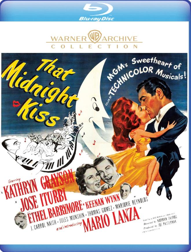 That Midnight Kiss introduced the world to Mario Lanza, and his powerful, passionate tenor voice is the main attraction of this lightweight musical loosely based on his early life. Kathryn Grayson makes a fine operatic foil and pianist extraordinaire José Iturbi pounds out pieces by Chopin and Liszt. Warner Archive's sumptuous transfer struck from a new 4K scan of the original nitrate Technicolor negatives and booming remastered audio make this disc a treat for opera and classics buffs alike. Recommended.