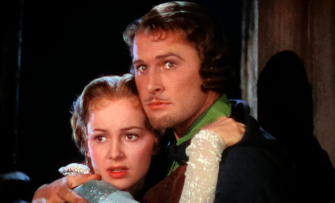 The best-known film of the bunch, director Michael Curtiz's rousing take on the legendary bandit who robbed from the rich and gave to the poor is awash in sumptuous Technicolor, contains Flynn's most recognizable portrayal, and features arguably the best sword fight in Hollywood history. Flynn is a vision in green as the jovial titular outlaw, Olivia de Havilland makes a ravishing Maid Marian, sidekick Alan Hale delights as Little John, and a villainous Basil Rathbone shows off his considerable fencing skills in this eye-filling spectacle that's just as entertaining today as it was when it first premiered almost 90 years ago. For a complete review of The Adventures of Robin Hood, check out our coverage of the 2008 Blu-ray release by clicking here. Rating: 5 stars