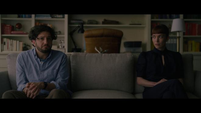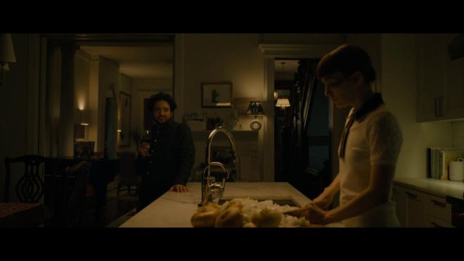 The 5.1 sound mix in DTS-HD MA mainly keeps sounds up front, with centered dialogue and ambient sounds with music in the left and right channels. There are some ambient sounds in the rear channels but they never call attention to themselves. This seems to suit the material however along with the darkly-lit picture. I do need to give proper credit to the scene where Suzie announces her desire to divorce- she does this while in a dimly-lit kitchen chopping onions, the sound of which is one of the most unpleasant I've heard in recent memory. After processing the information, Keane asks her, "What are you going to do with all those onions?" She replies, "Nothing- I just like the sound." As I'd been cringing at that sound through the whole scene, that reply provided the best laugh in the movie.