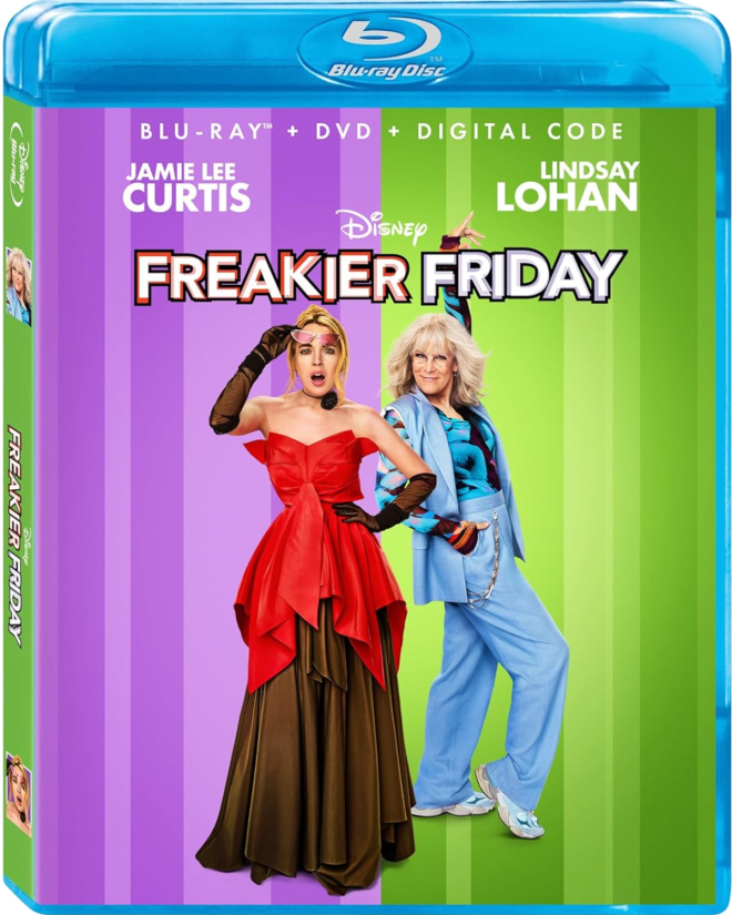 Freakier Friday arrives in a two-disc release, finding the film on both DVD and Blu-ray, housed in a standard case, along with a slip inside with a code for digital redemption on services like Movies Anywhere.