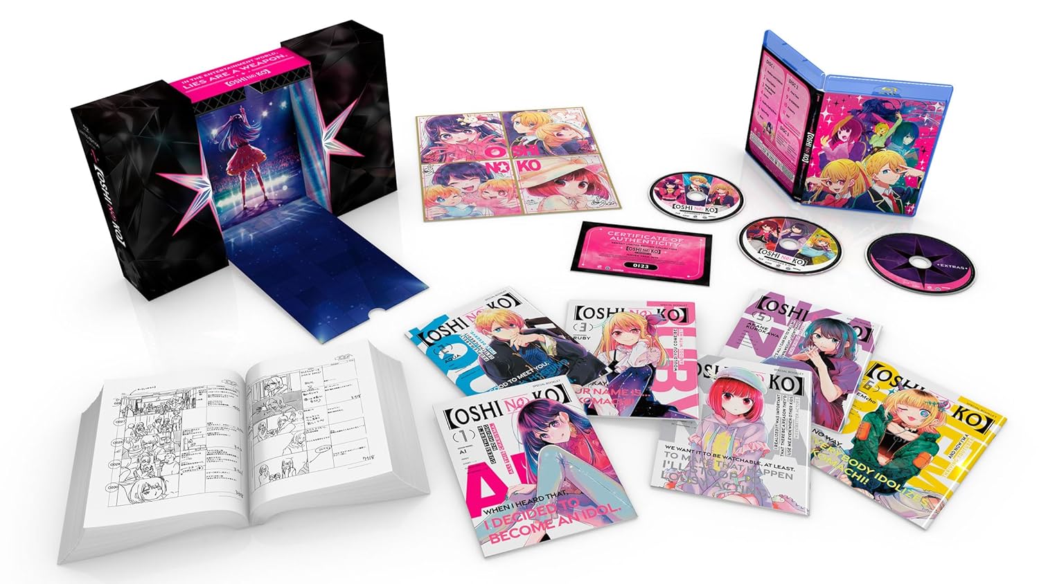 When a pregnant young starlet appears in Gorou Amemiya’s countryside medical clinic, the doctor takes it upon himself to safely (and secretly) deliver Ai Hoshino’s children so she can make a scandal-free return to the stage. But no good deed goes unpunished, and on the eve of her delivery, he finds himself slain at the hands of a mysterious killer — and subsequently reborn as Aquamarine Hoshino, one of Ai’s twin children! Alas, the glitz and glamor of showbiz hide the dark underbelly of the entertainment industry, threatening to dull the shine of his favorite star. Can he help his new mother rise to the top of the charts? And what will he do when an unthinkable disaster strikes?