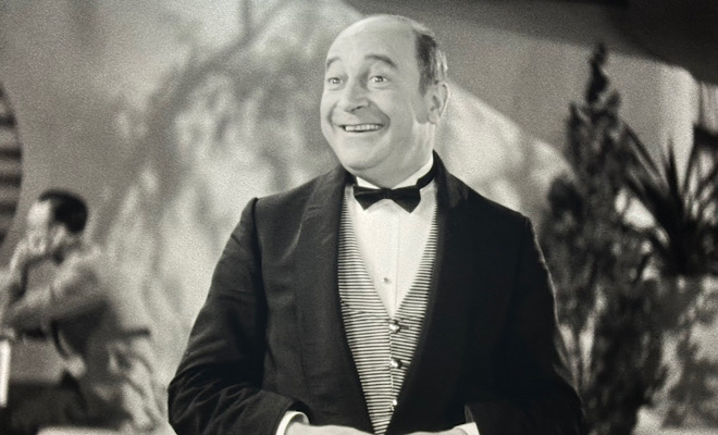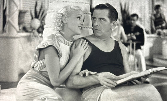 The debonair yet eternally befuddled Edward Everett Horton (who also enlivens Top Hat and Shall We Dance), hilarious Eric Blore (who had already appeared in Flying Down to Rio and would grace Top Hat, Swing Time, and Shall We Dance), and dashing Rhodes (who would play a temperamental Italian once again in Top Hat) all perk up the proceedings with colorful portrayals distinguished by pitch-perfect comic timing. Blore and Rhodes were both imported from the stage production to recreate their roles, and while both earn their share of laughs, Blore - as always - steals the show. There aren't many actors who can provoke guffaws by simply saying "toasted scones," but Blore can and does.