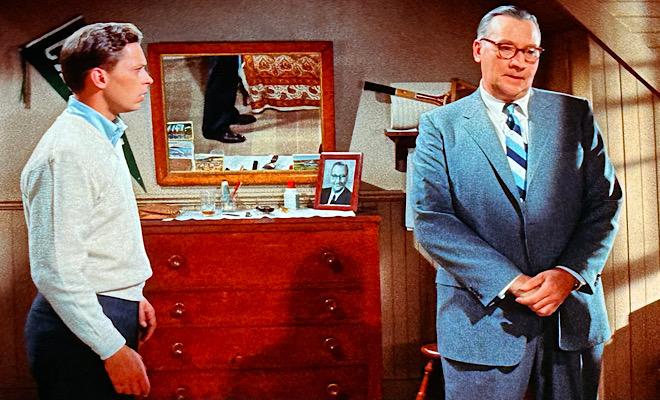 The gruff, macho Bill silently condones the abhorrent behavior, thinking "it might make a man" out of Tom, and even Tom's own father, Herb Lee (Edward Andrews), indirectly piles on. Like any father, he wants his son to be part of the gang, but when Tom chooses pastimes that don't align with macho sensibilities, won't get a crew cut like the other boys, and worst of all, is denigrated and marginalized by his own gender, Herb is deeply ashamed, embarrassed, and angry. He should stand up for Tom and offer support and encouragement, but instead, Herb withholds his love and approval.