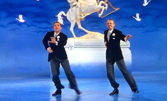 The last Astaire number teams the preeminent dancer with his equally preeminent counterpart, Gene Kelly, in a three-part traditional tap routine that remains one of the all-time highlights of musical films. MGM’s celebratory documentary That’s Entertainment! includes a snippet of “The Babbitt and the Bromide,” but seeing this exciting, energetic, athletic, and often humorous number in its entirety is a real treat and complete joy. Here's a more healthy taste: