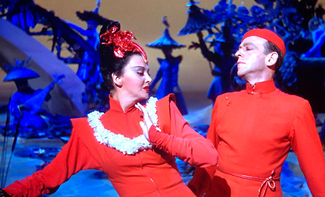 Astaire dominates the proceedings, appearing in four numbers sprinkled throughout the film. After the aforementioned opener, his partner du jour Lucille Bremer (best remembered for playing Garland’s older sister in Meet Me in St. Louis, but who also co-starred with Astaire around the same time in one of his few flops, Yolanda and the Thief) joins him for an enchanting musical tableau set to “This Heart of Mine.” A revolving dance floor, conveyor belts, and a heaping helping of terpsichorean grace distinguish the elaborate sequence, but it's no match for the knockout “Limehouse Blues,” a powerful “musical pantomime” set in San Francisco’s Chinatown. The impeccably mounted and executed number casts Astaire as a poor, humble Asian man whose fascination with a cool Asian beauty (Bremer) leads to tragedy. A lyrical dream sequence that's the centerpiece of the mini-drama celebrates Asian culture while showcasing MGM’s musical artistry and providing Astaire and Bremer with a breathtaking routine that’s pure poetry in motion.