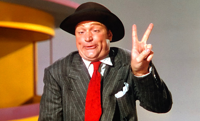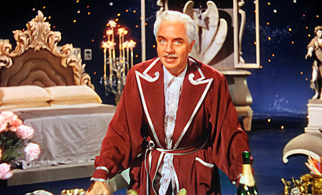 Ziegfeld enlists the earthly assistance of his “old pal” Fred Astaire, who opens the show with an ode to the sexy, statuesque Follies showgirls, “Here’s to the Beautiful Ladies.” That spritely song morphs into a lavish production number featuring a young, graceful ballerina named Cyd Charisse and a whip-wielding, drop-dead-gorgeous Lucille Ball, who tames a pack of slinking feline dancers draped in black sequined cat outfits (see video clip below). Ball utters not a single word and barely cracks a smile, but makes a stunning impression. It’s just a shame she’s not allowed to strut her comedic stuff in a later skit.